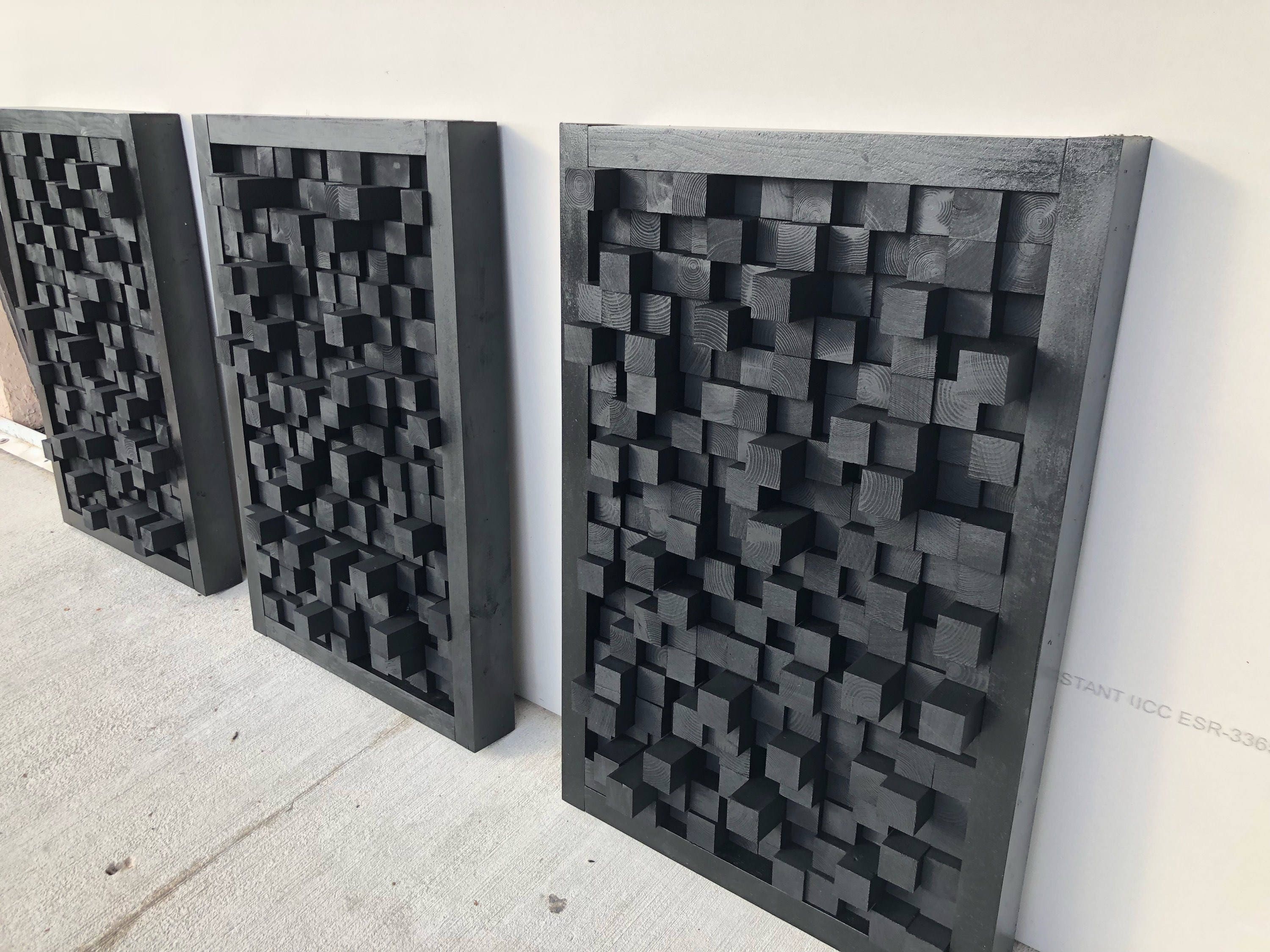 Wooden Art Sound Diffuser Black Hanging Acoustic Panel Studio Etsy Australia